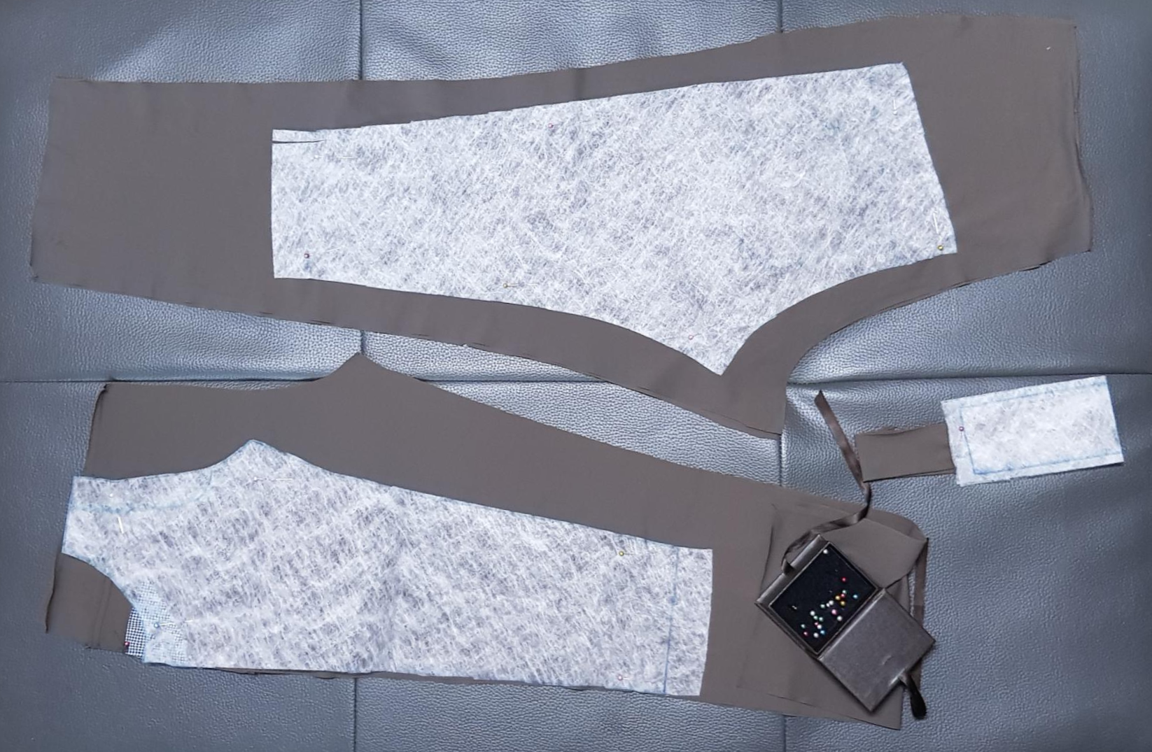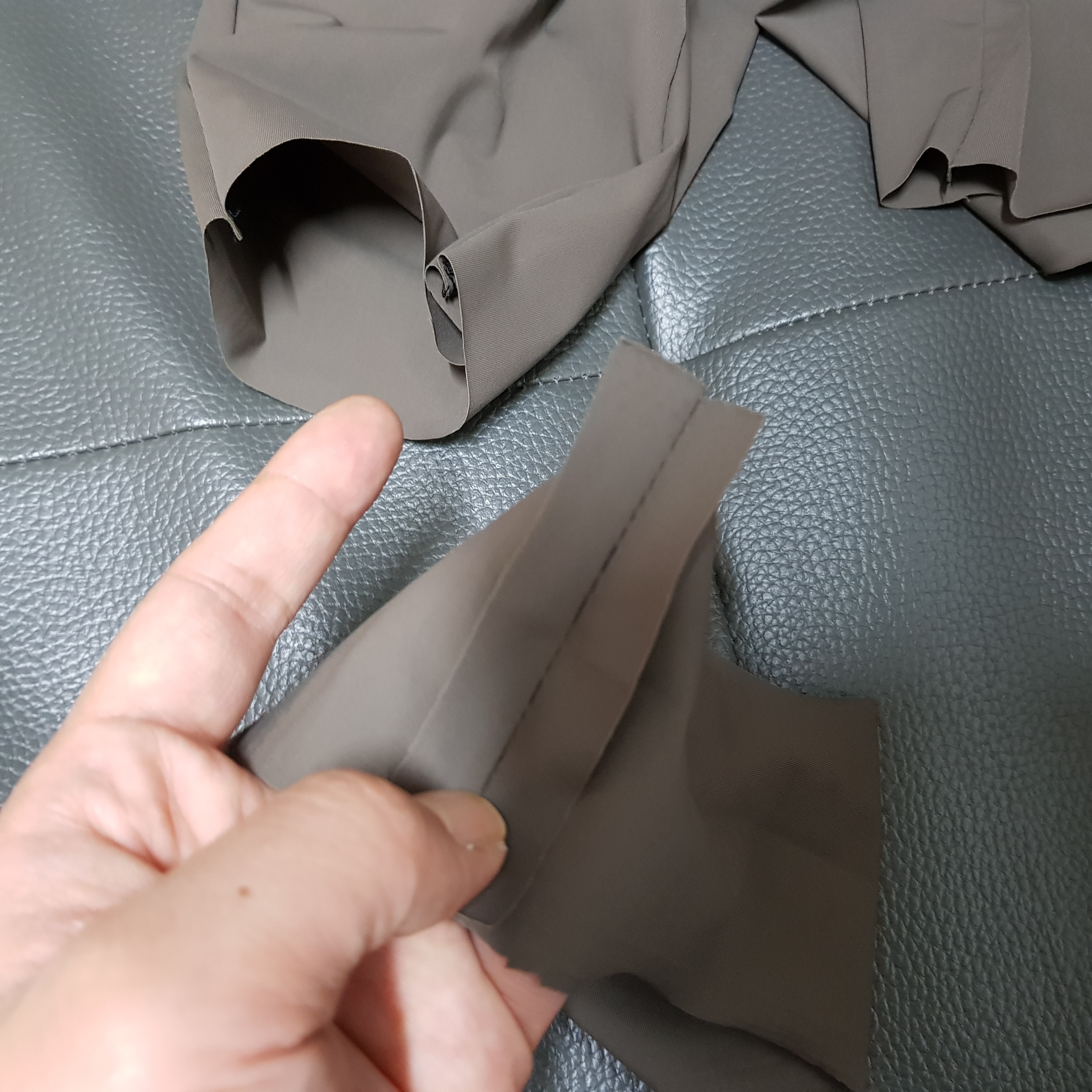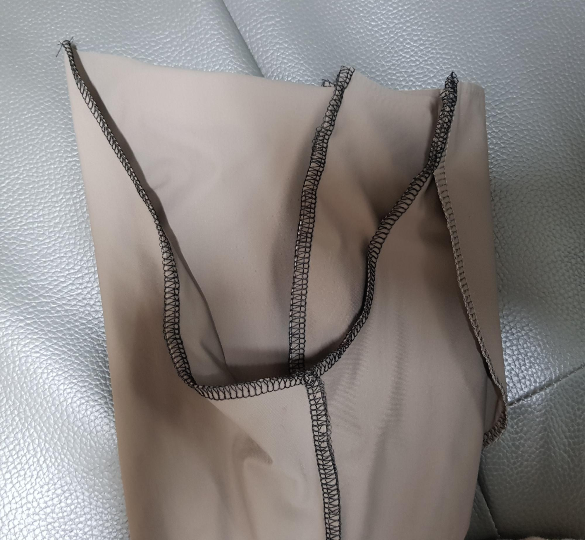 만들어진 오른쪽 다리와 왼쪽 다리를 겉끼리 맞대어 뒤집는다. 그리고 밑 위를 재봉한다.