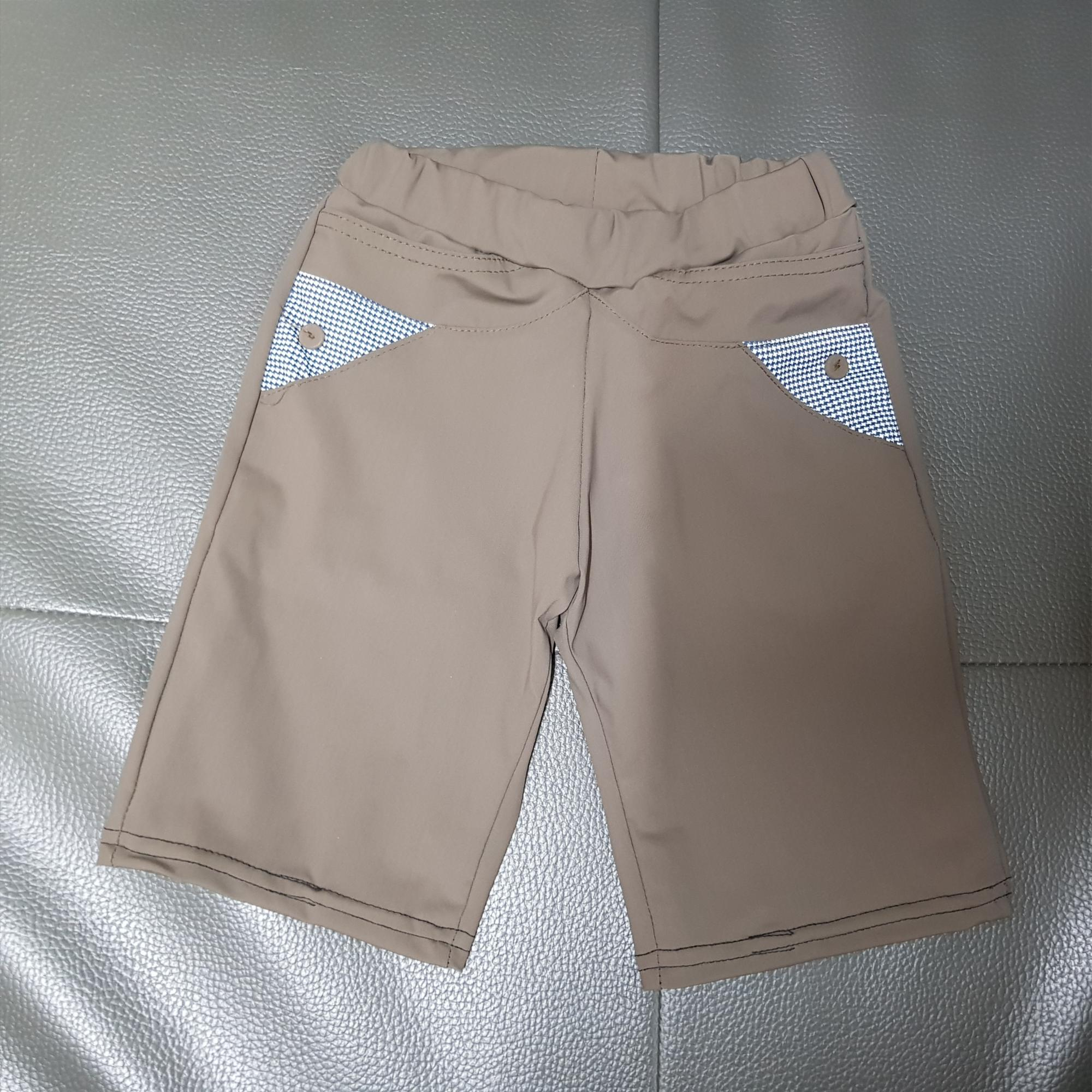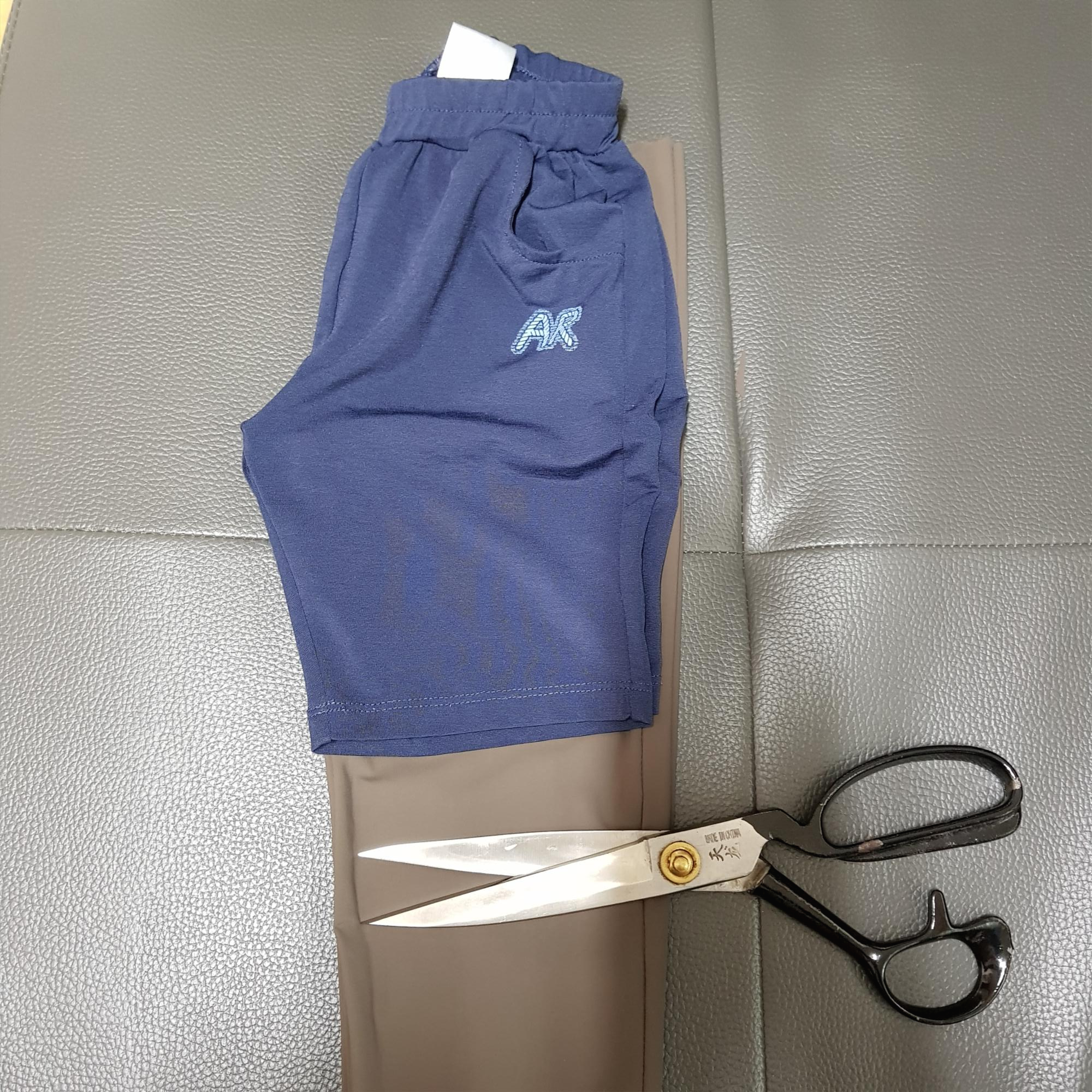 생각해 보니 긴바지를 만드는 것이 아니라 반바지였다. 아이의 긴바지 패턴을 이용해서 생각 없이 긴바지를 만들고 있었다. 그래서 기성복 아이 반바지를 올리고 밑단을 재단한 후에 밑단을 넣었다.