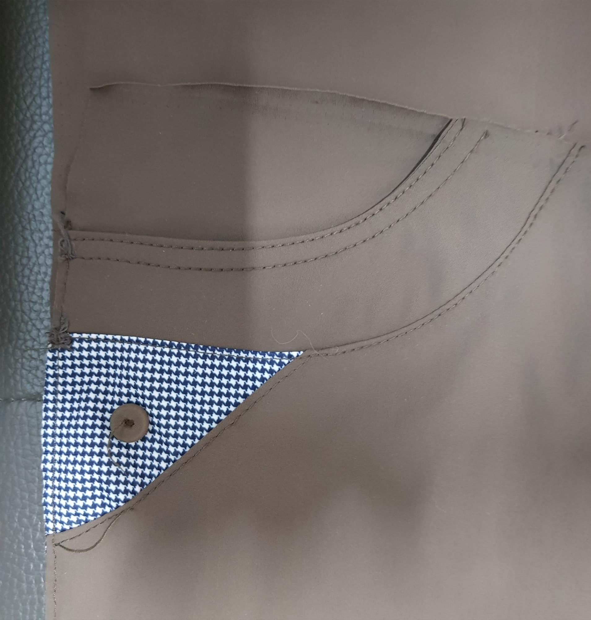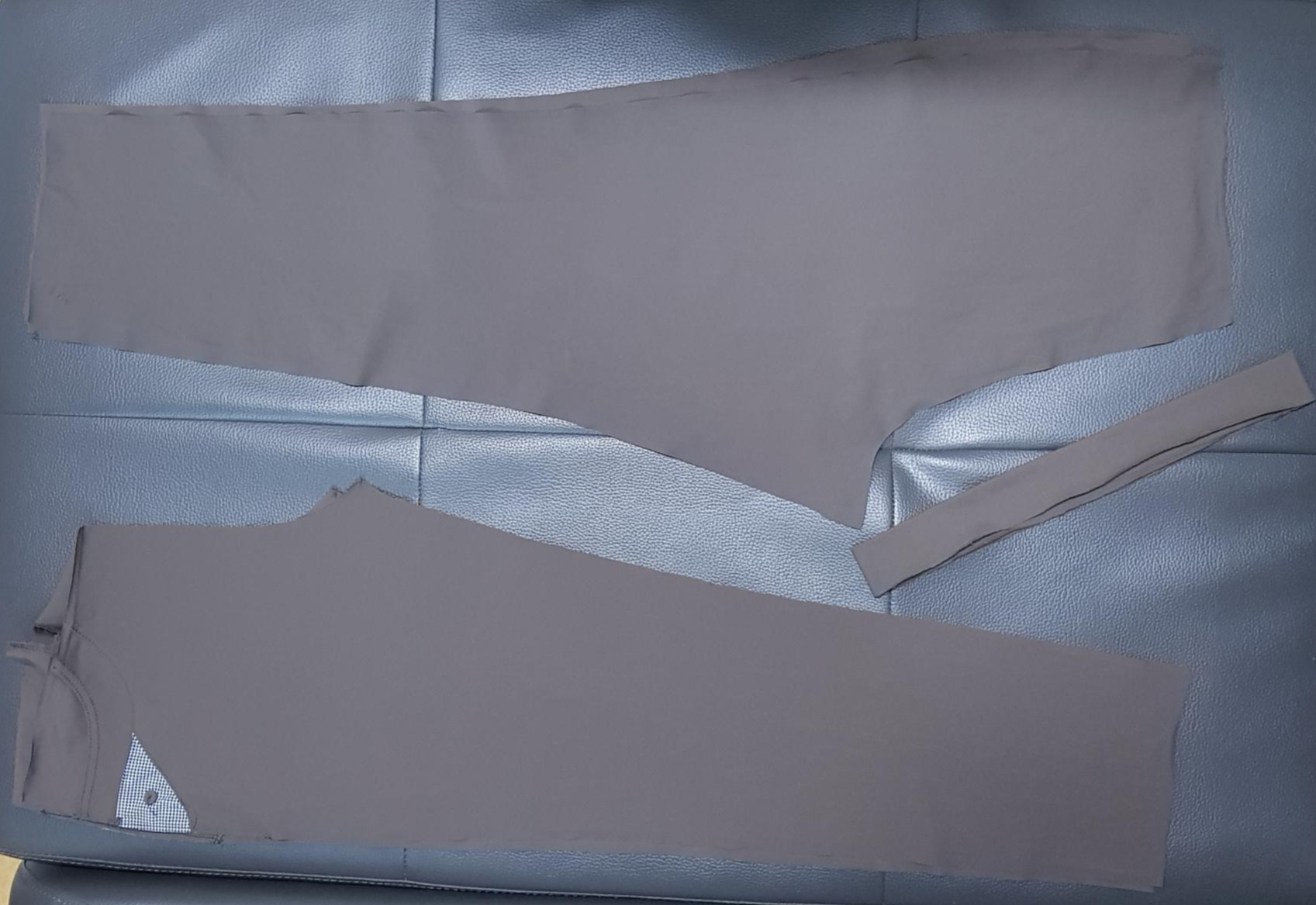 아래 사진은 성인 바지의 실밥을 뜯어 분해한 사진이다. 바지 앞판 2장, 바지 뒤판 2장, 허리 벨트 1장. 주머니는 그대로 사용할 것이므로 바지 앞판에 붙어있는 주머니는 뜯지 않았다.