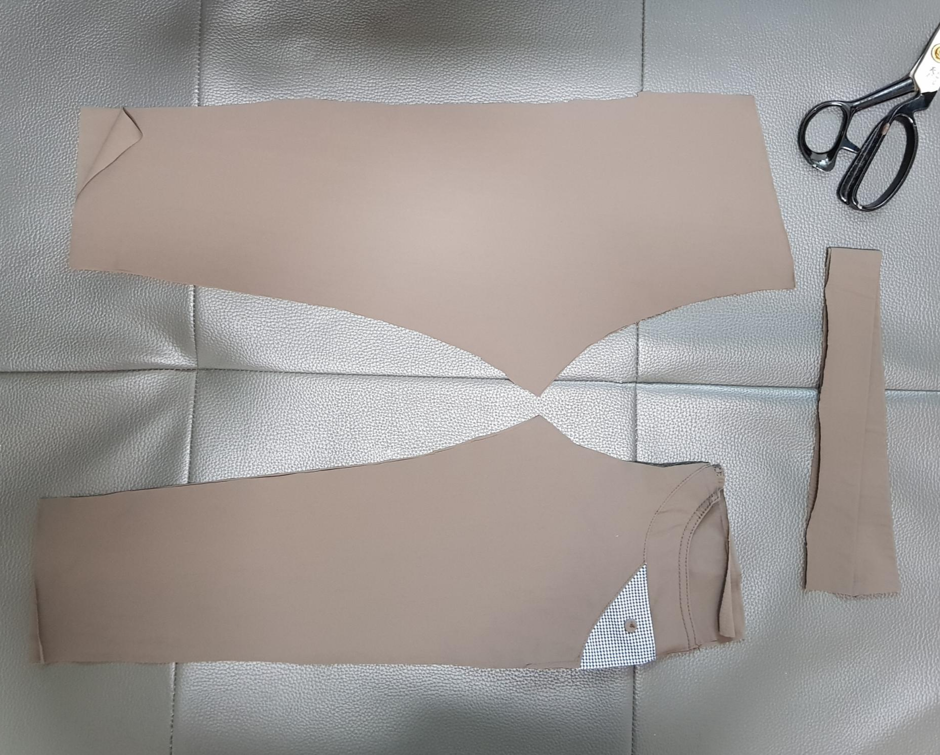 옷장을 정리하다 보면 내가 입기엔 적고 버리기엔 아까운 옷들이 많다. 이번엔 성인 바지를 수선하여 아이 바지를 만들어 보려고 한다. 사용한 원단의 소재는 정확히 알 수 없으나 폴리에스테르와 폴리우레탄이 혼합된 재질 같다. 수영복과 같이 흐늘흐늘하고 얇으면서 신축성이 매우 좋다. 아마도 폴리우레탄이 20% 이상인 거 같다. 아래 사진은 수선하기 전 성인 바지이다.