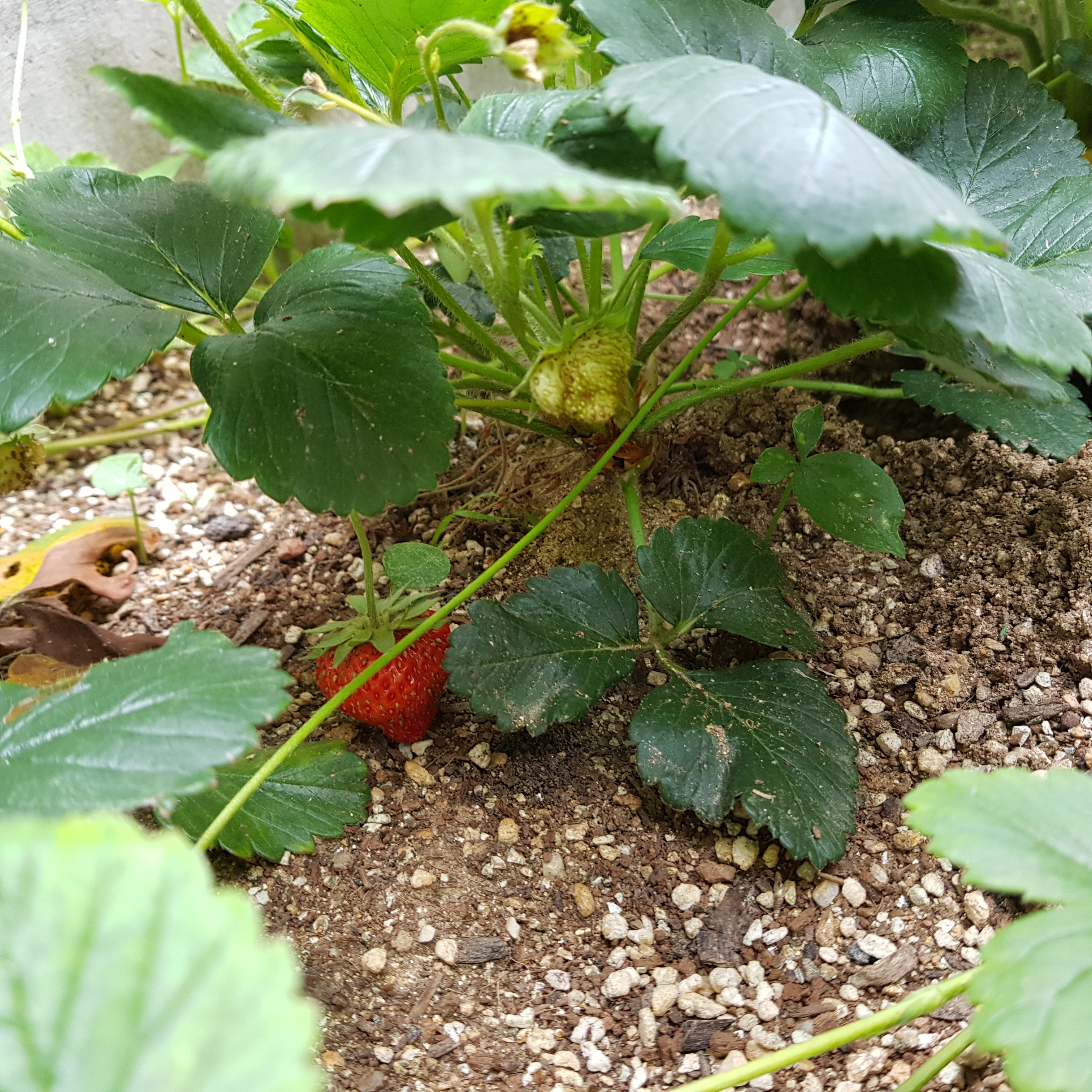 아래 사진은 1~8번 딸기다. 2번 딸기에 빨갛게 익은 딸기 1개와 아직 빨갛게 익지 않은 딸기가 달려 있다. 7번에도 과턱이 발달한 딸기가 있지만 별로 기대하지 않는다. 어차피 첫해라 작고 달지 않기 때문이다. 정신이 없어서 그런지 8번 딸기 사진은 잎만 한 장 흔들려서 찍혔다ㅠㅠ