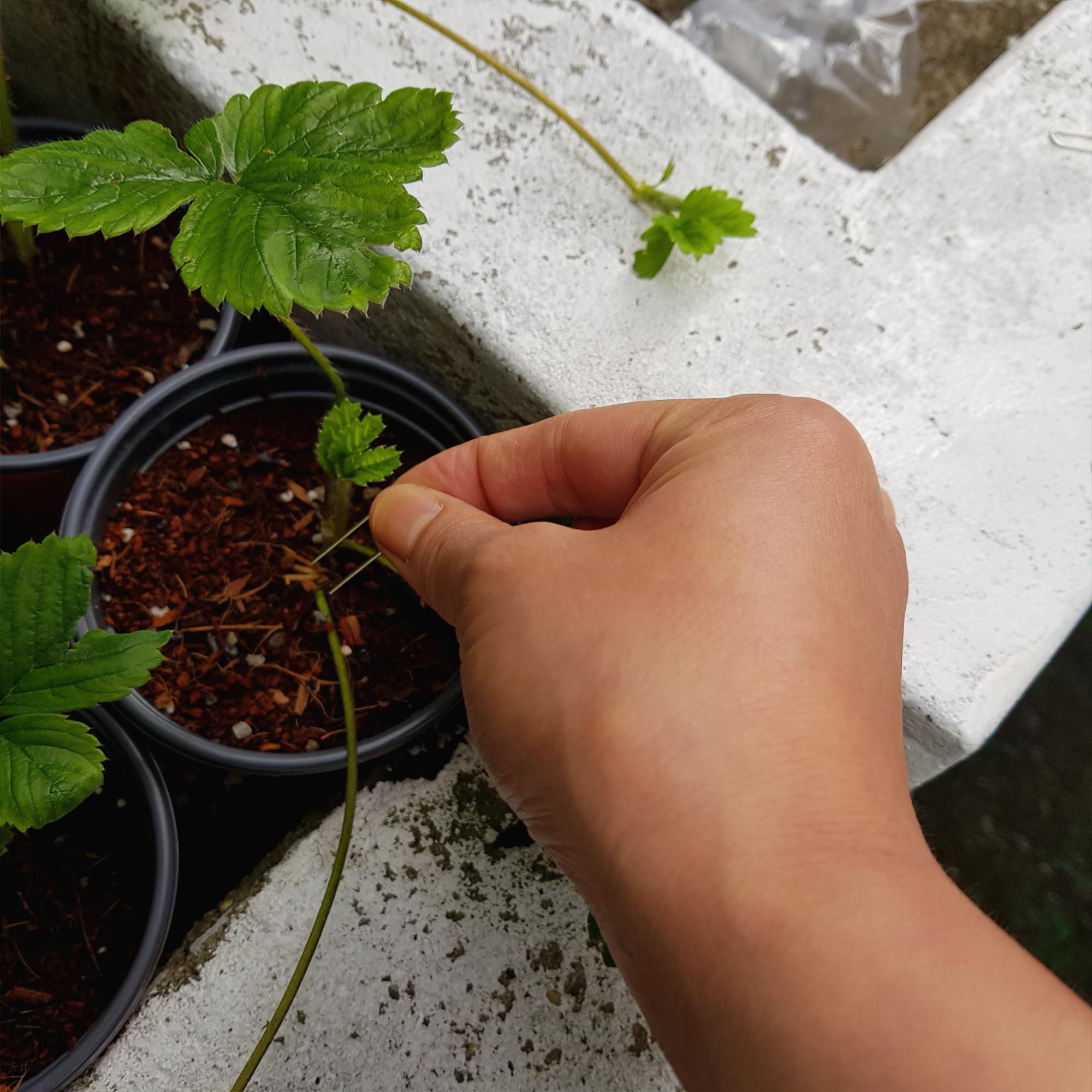 그리고 흔들리는 딸기 자식묘는 클립으로 고정해 줬다. 아래 사진과 같이 클립을 펴서 반으로 잘라서 고정했다.