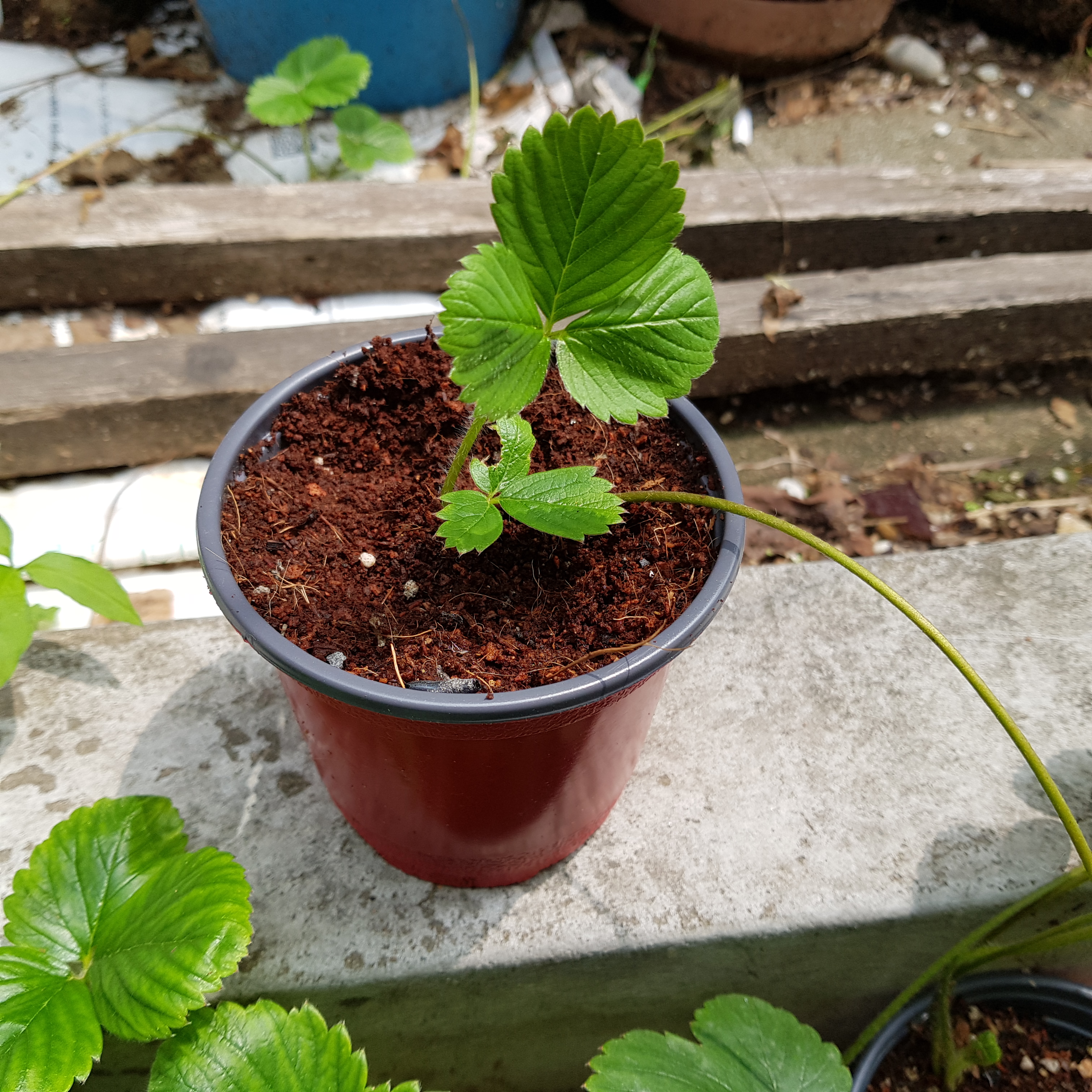 남은 플라스틱 화분에 딸기 런너 옮겨심기를 했다. 심었다기보다 화분에 딸기 자식묘를 쑤셔 넣었다ㅋㅋㅋ