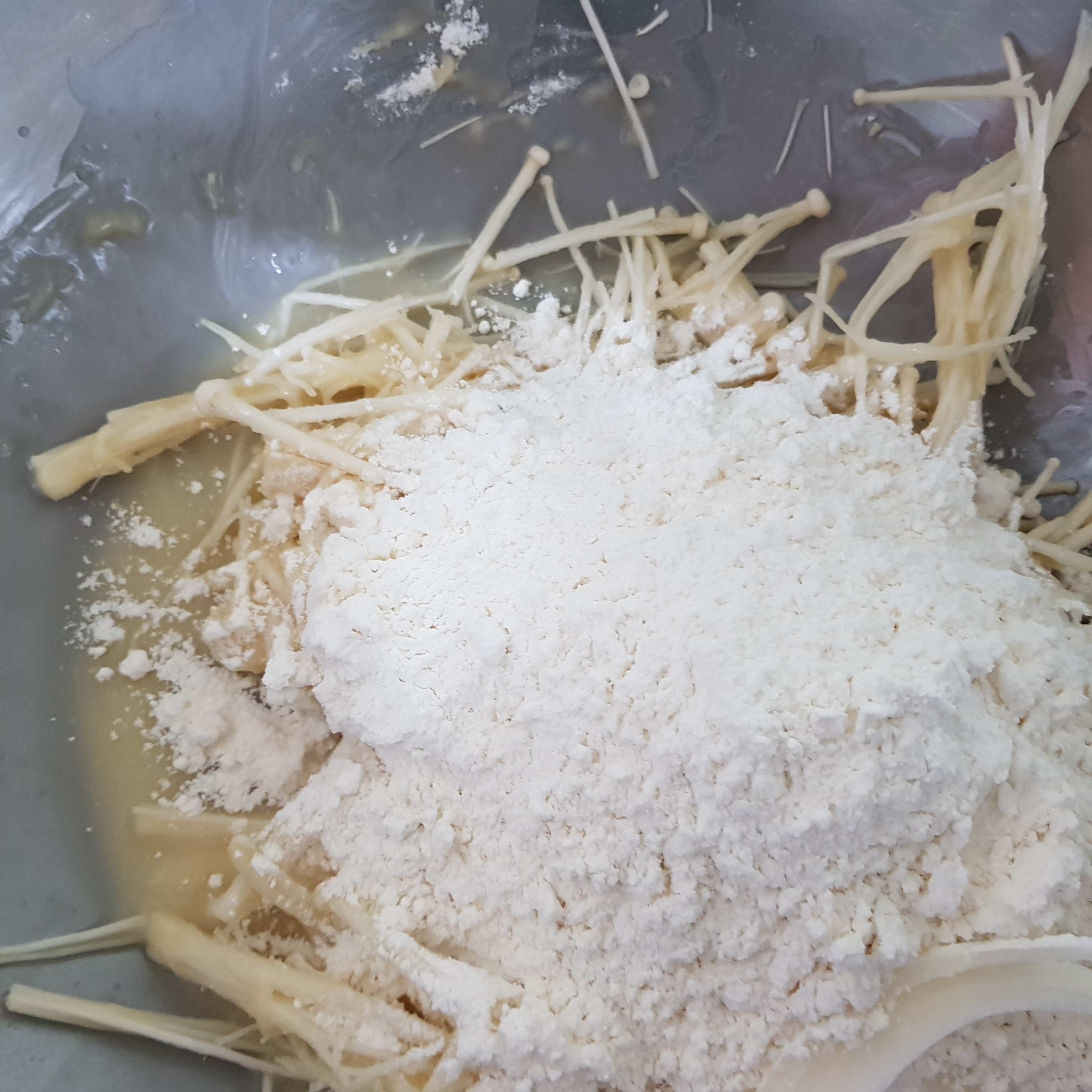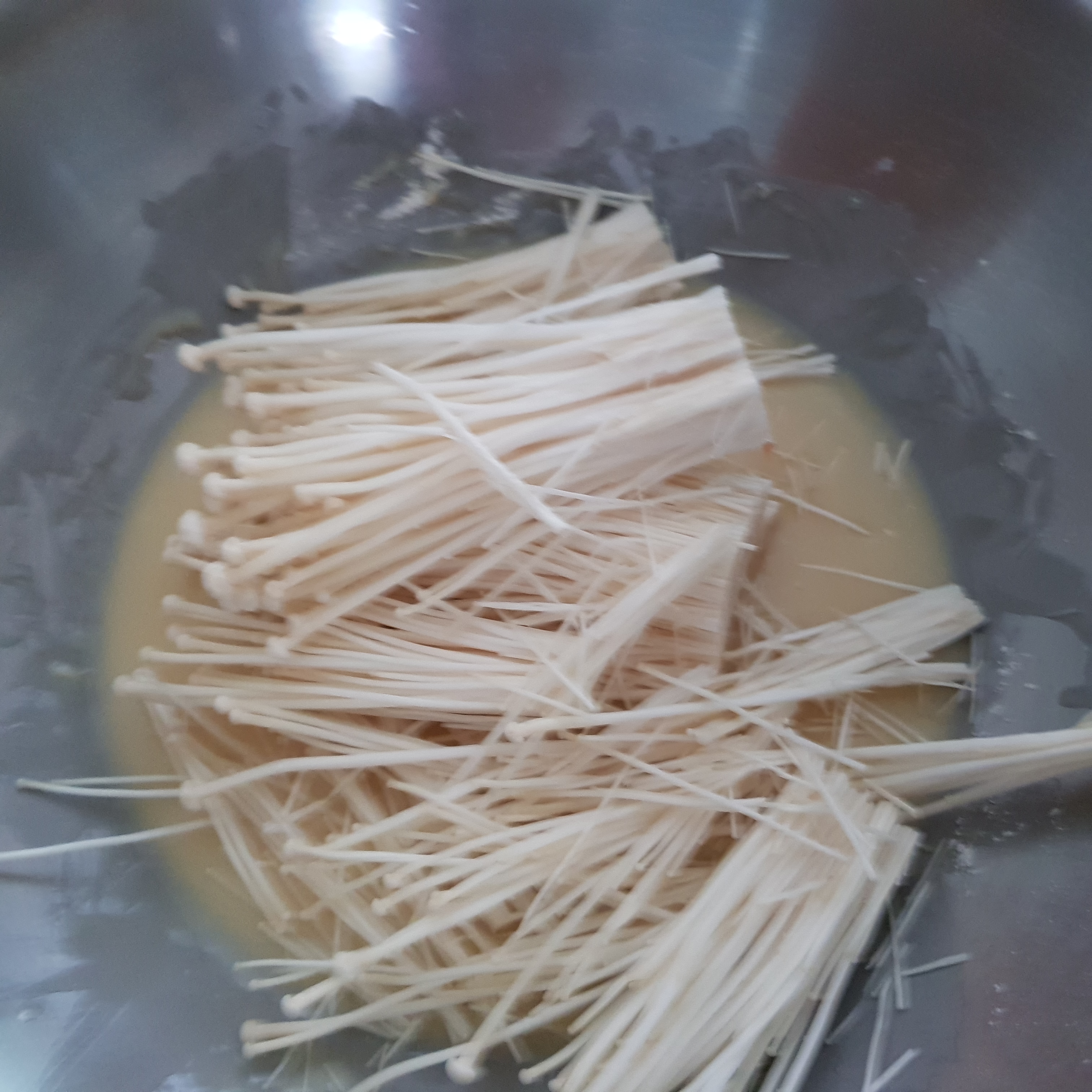 여기저기 팽이버섯 튀김 레시피를 찾았다. 전분과 식용유를 1:1로 반죽하면 아주 바삭한 튀김옷이 된단다. 엄청 느끼할 것 같지만 이연복 셰프도 탕수육 반죽을 식용유로 한다고 냉장고를 부탁해에서 봤다. 튀기면서 기름은 빠지고 전분만 남아 더욱 바삭하고 담백해진다고. 그래서 해봤다.