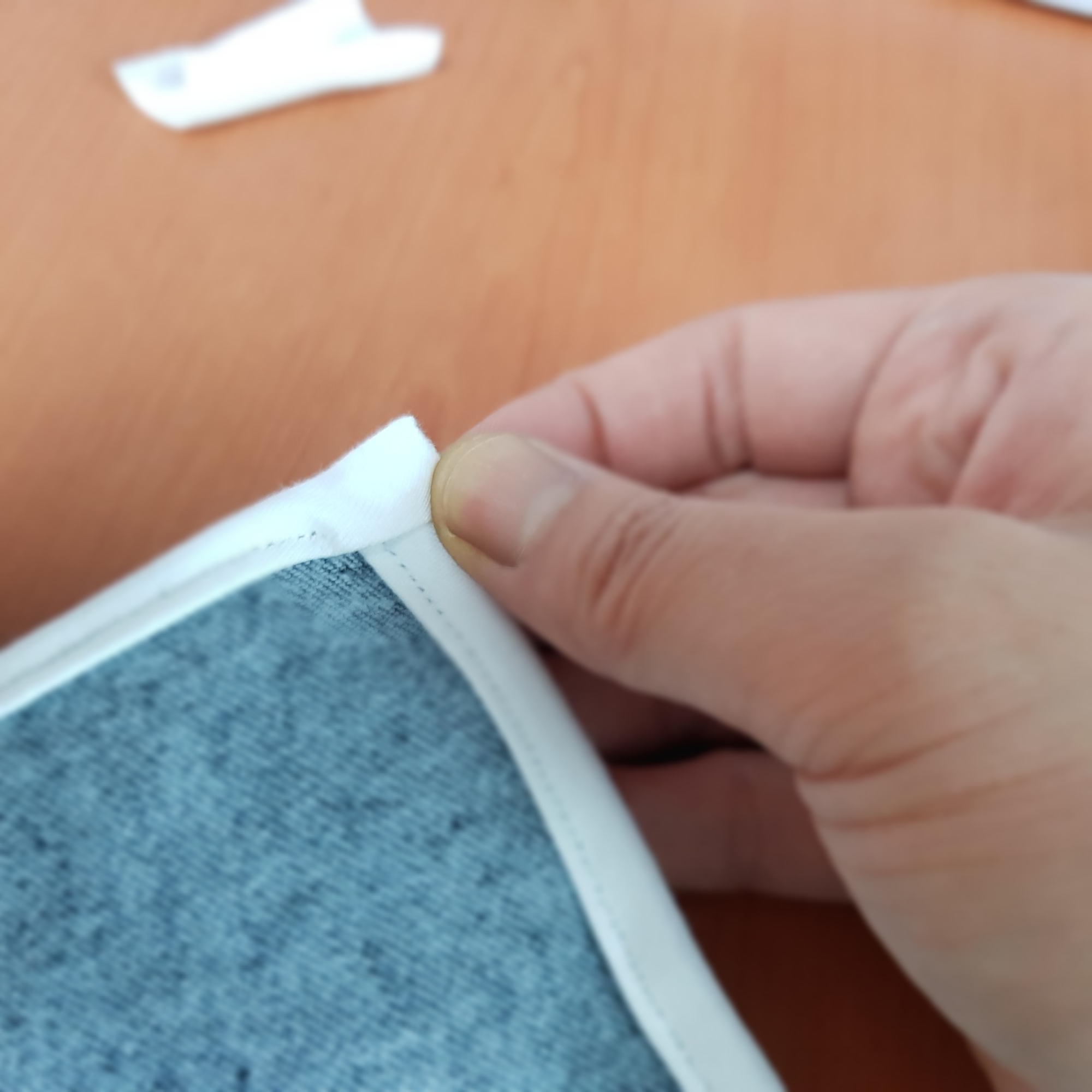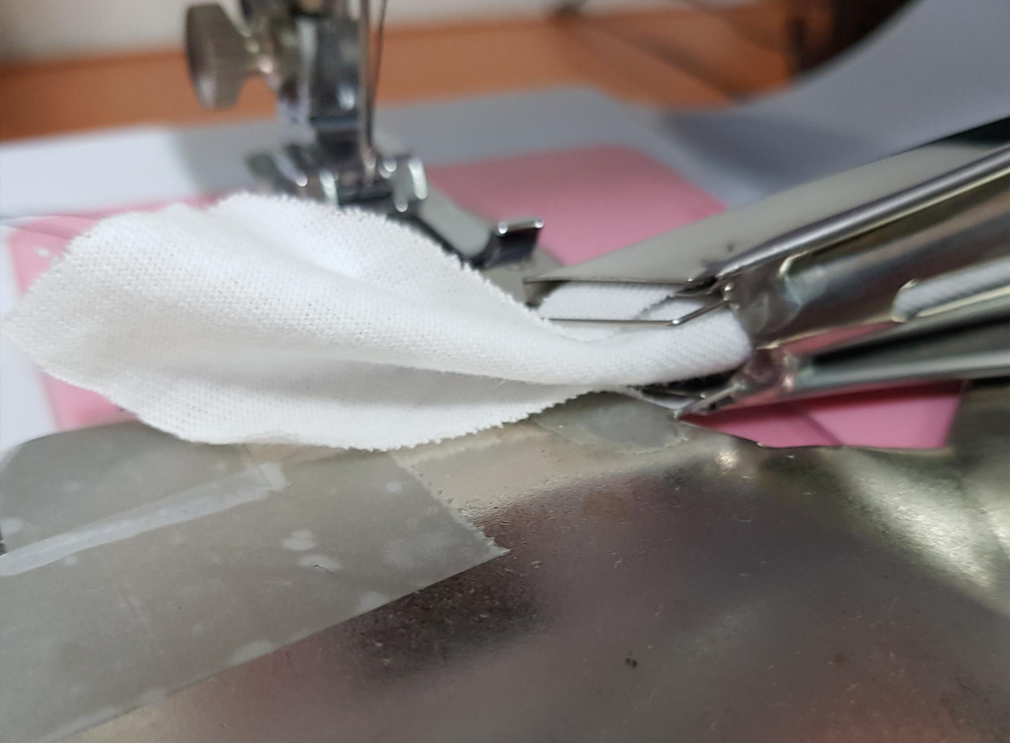 ⑦바이어스 칠 원단을 바이어스 원단 사이에 넣는다.
