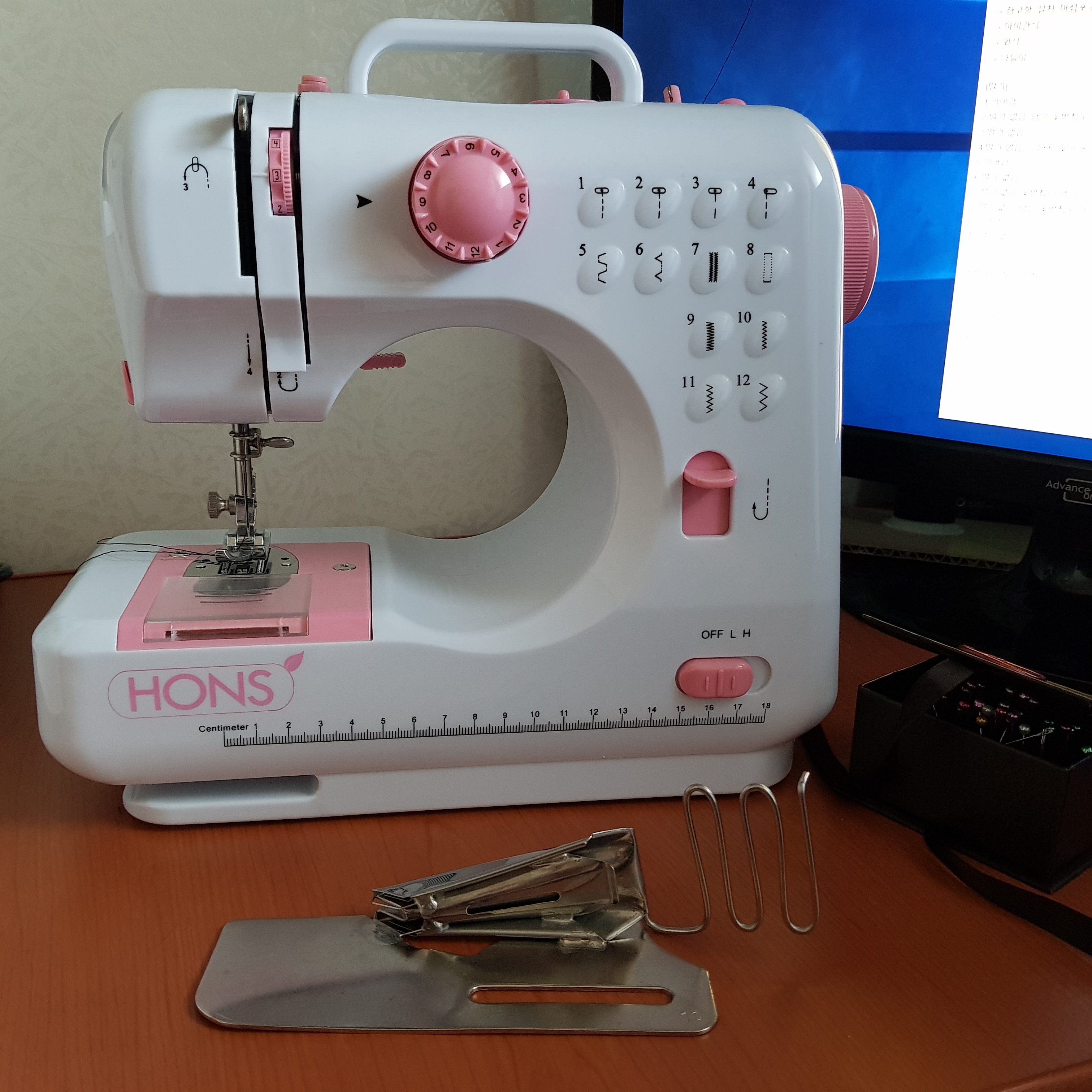 아이고~ 생각보다 랍바의 크기가 크고 혼스 미니재봉틀의 크기는 너무 작다.