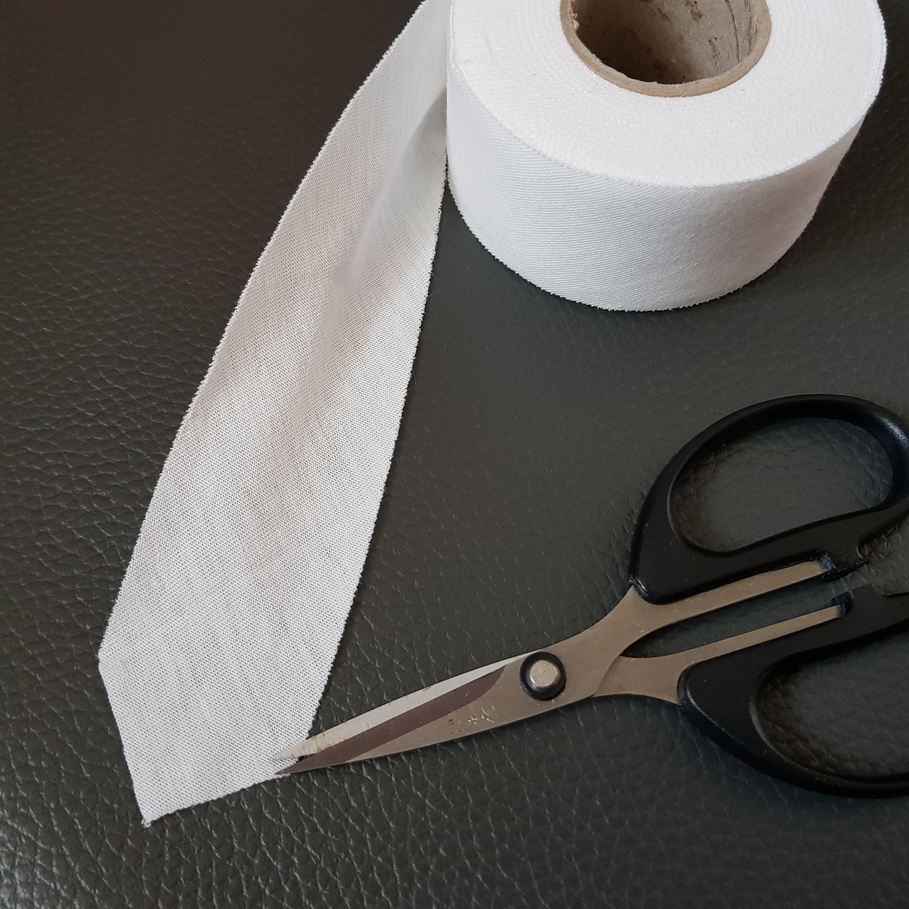 바이어스(bias)는 '비스듬한' 뜻으로 원단을 대각선으로 재단한 것이다. 바이어스 만들 원단도 없고 귀찮기도하고 정확히 40mm 재단할 자신도 없어서 바이어스를 구매했다. 원단은 30수 싱글 다이마루이며 폭은 4cm, 길이는 900cm, 가격은 4,900원이다. 비싸다. 편한만큼 그에 따른 대가를 치러야 한다.