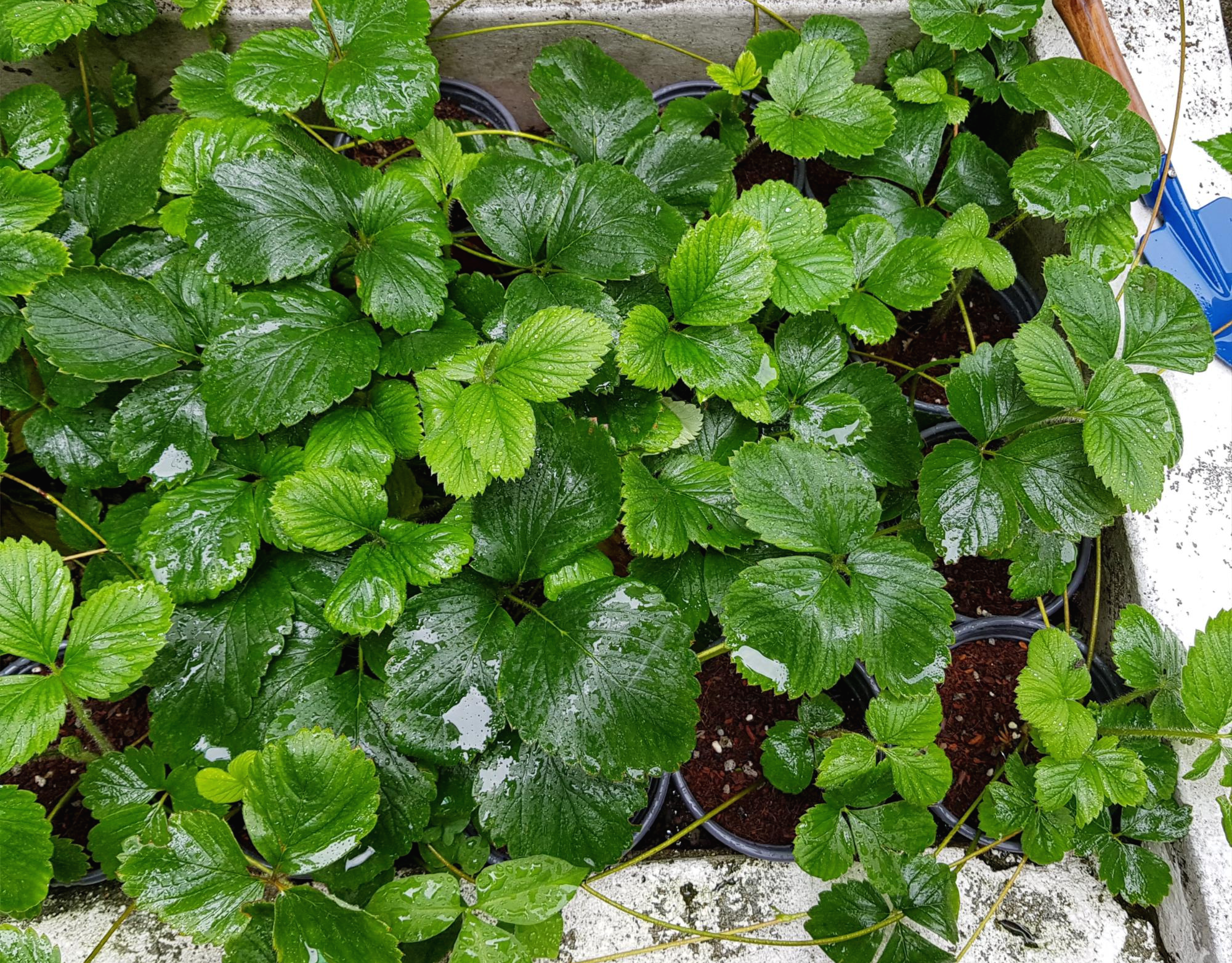 아래 사진은 딸기 런너를 옮겨 심은 화분들이다. 얼핏 보면 잘 자라고 있는 거처럼 보인다.