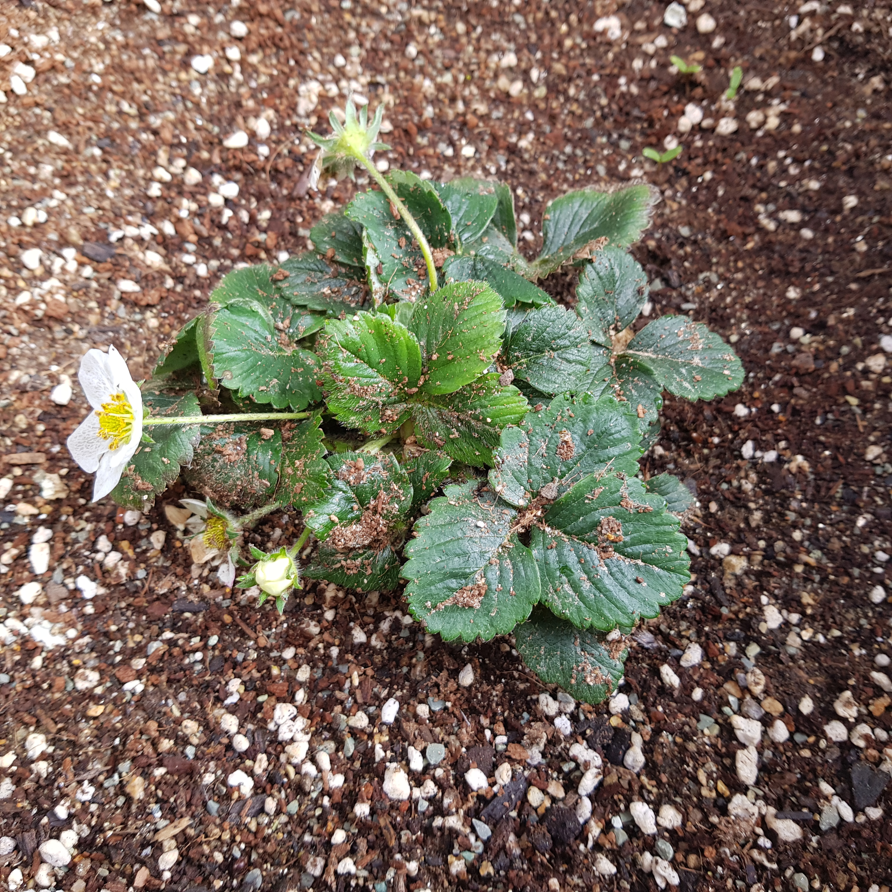 -> 안 했다. 아마도 토양에 검정 비닐을 씌웠다면 아래 사진과 같이 잎과 꽃, 딸기는 적어도 더러워지진 않겠지.
