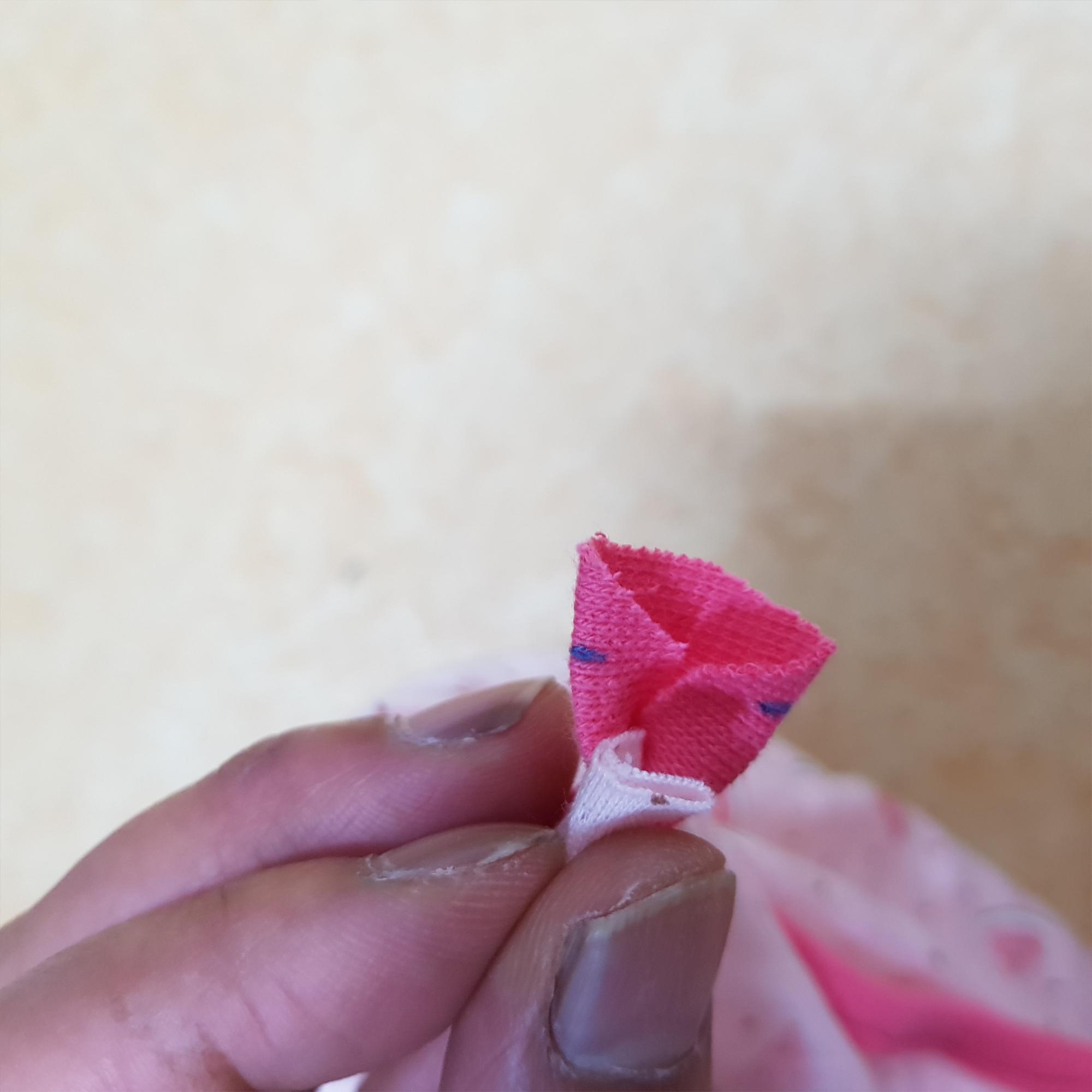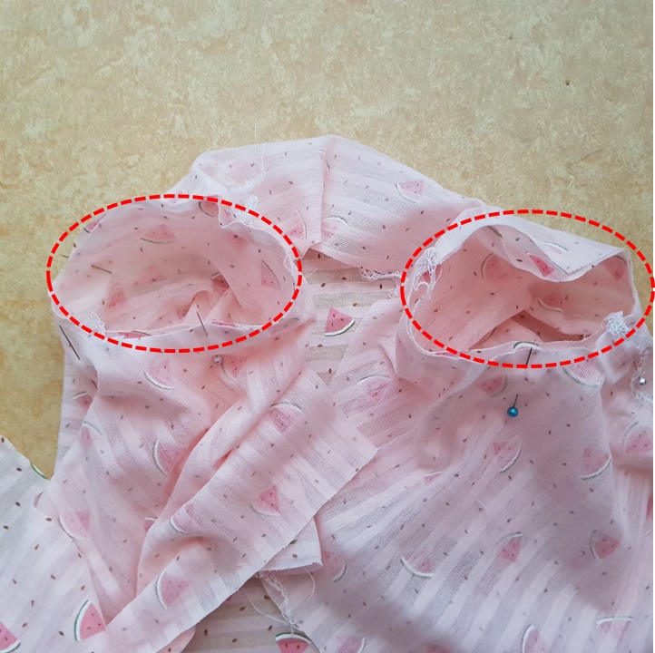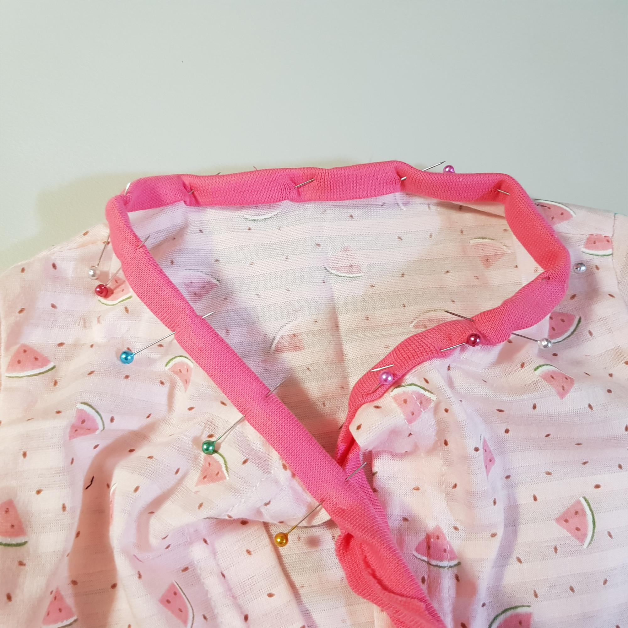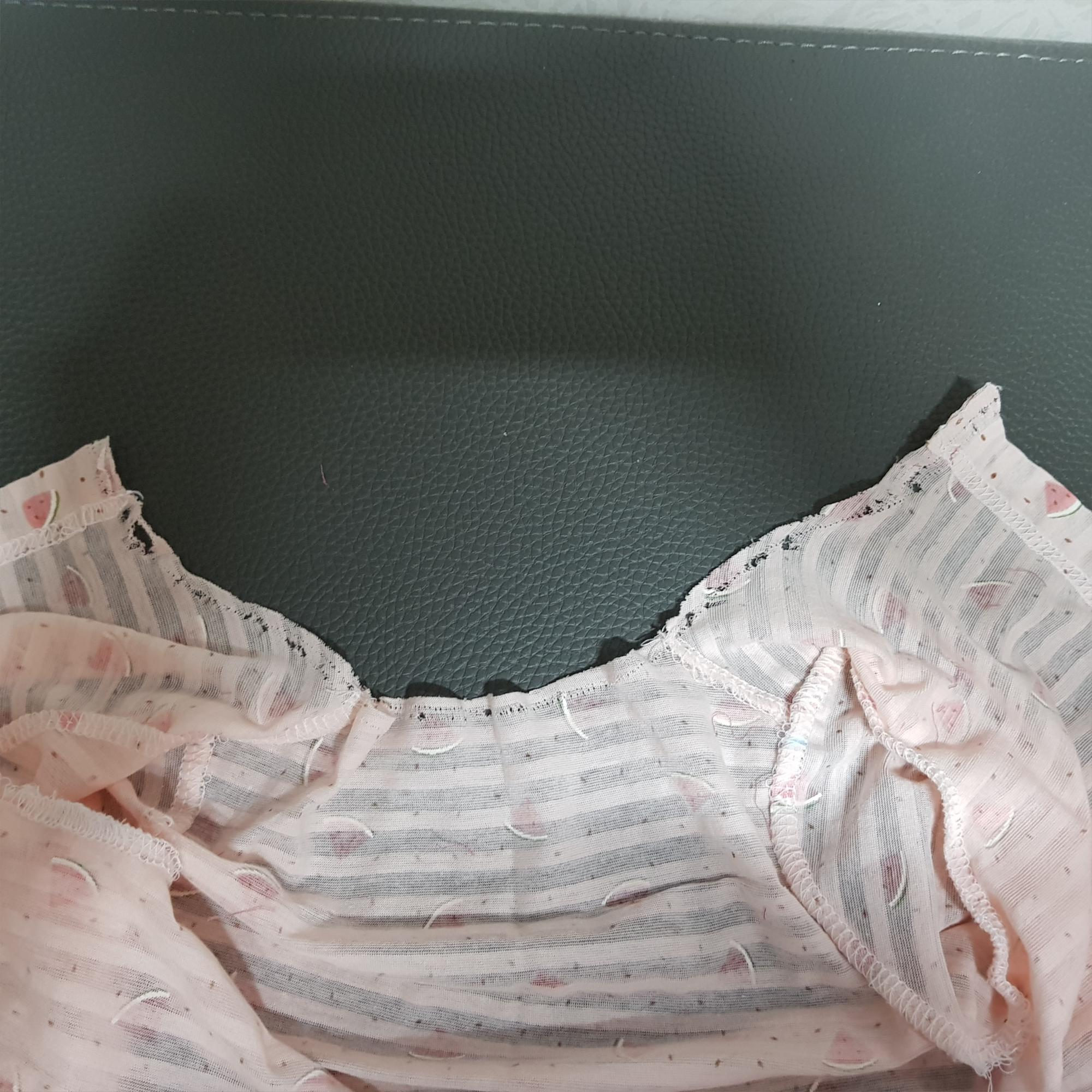 목 바이어스 달기 2차 시도 실패 후 다시 뜯었다. 그래서 아래 사진과 같이 원단이 너덜너덜하다.