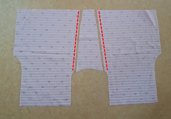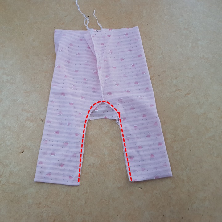 바지의 앞부분 중앙을 골선으로 만들었다면 재봉할 일이 없었을 텐데 잘못 재단했기 때문에 어쩔 수 없이 재봉했다.