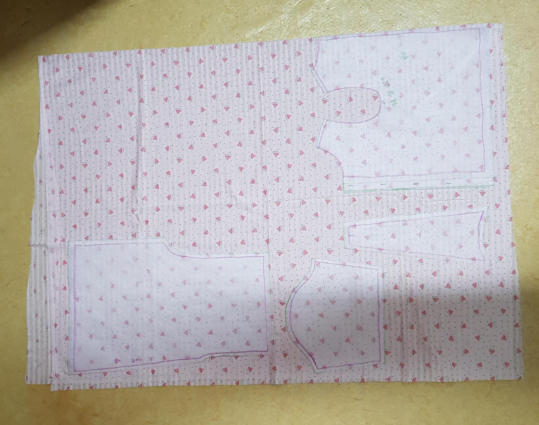늘 첫째 아이 옷만 만들고 처음으로 100일 앞둔 딸 옷을 만들어 보려고 한다. 사이즈는 80호다. 집에 있는 아이 옷으로 패턴을 그려서 오차가 있겠지만 그래도 내년까지 입을 수 있을 것 같다. 아래 사진에 보이는 옷으로 패턴 베끼기를 했다. 사용한 원단은 유명한 원단에서 구입한 쟈가드 원단이다. 봄, 여름, 가을 실내복은 쟈가드 원단이 가장 좋은 것 같다.