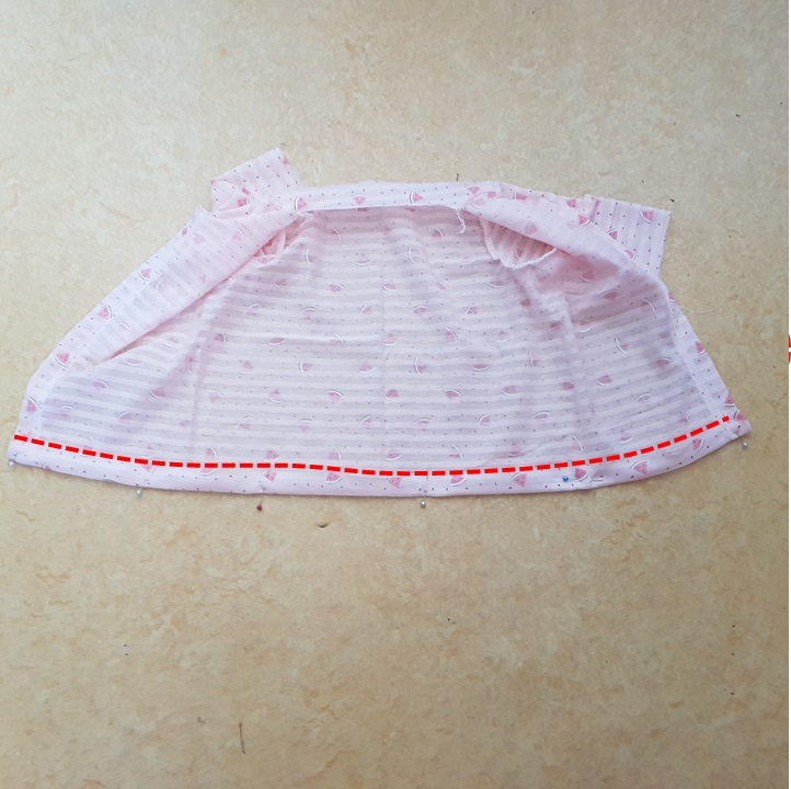 왼쪽, 오른쪽 트임 부분을 접어서 재봉한다. 2cm 정도를 접었다.