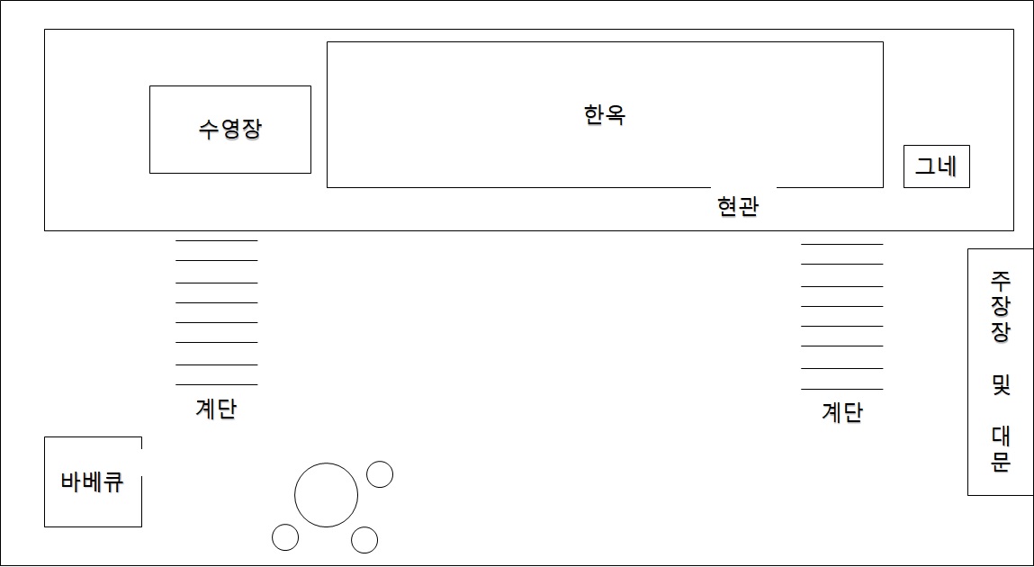대부도 독채 펜션 한옥 1층은 대략 아래 그림과 같이 생겼다.