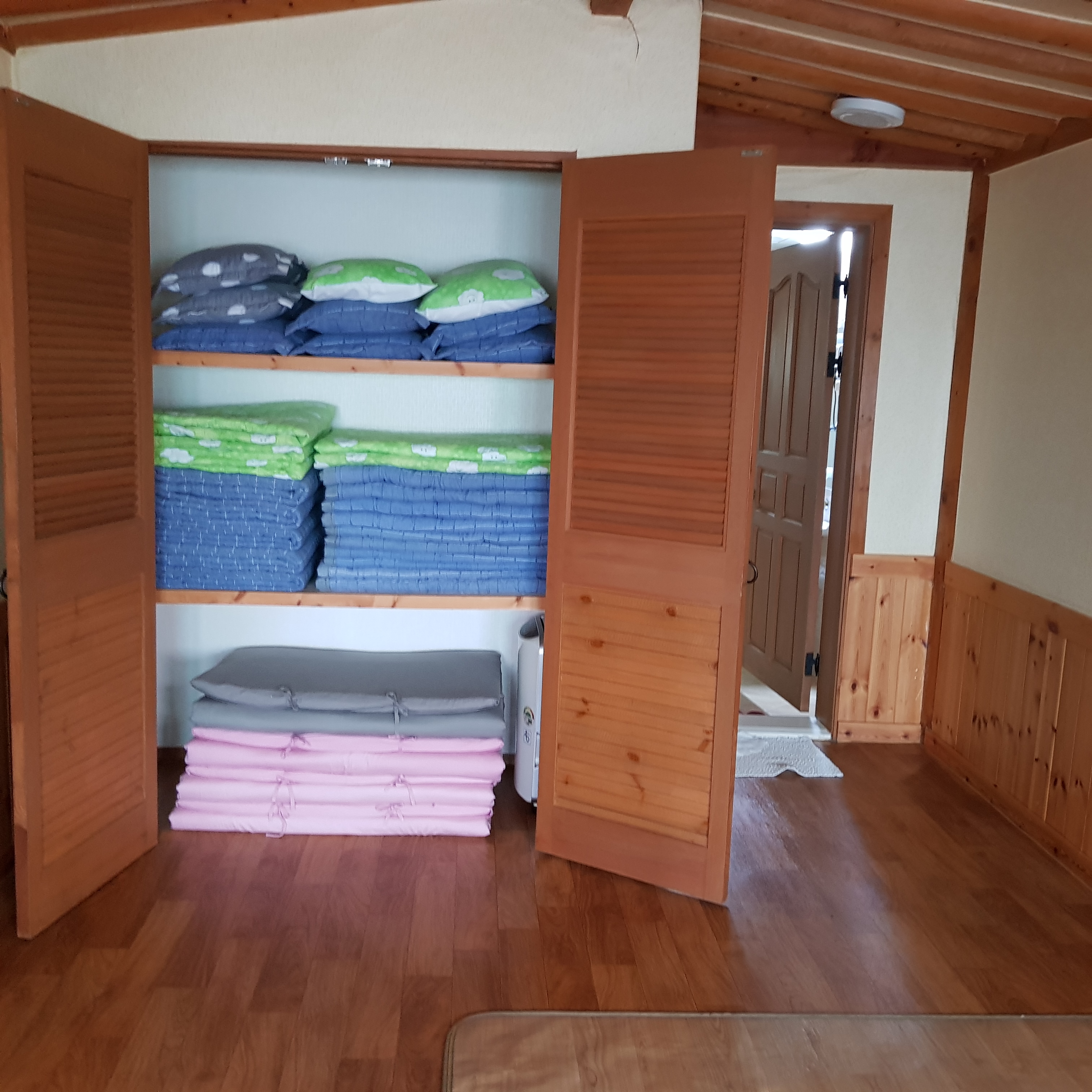 1층 큰방에는 이불장이 있다. 정리 정돈이 잘 되어 있어서 마음의 평화가 온다.