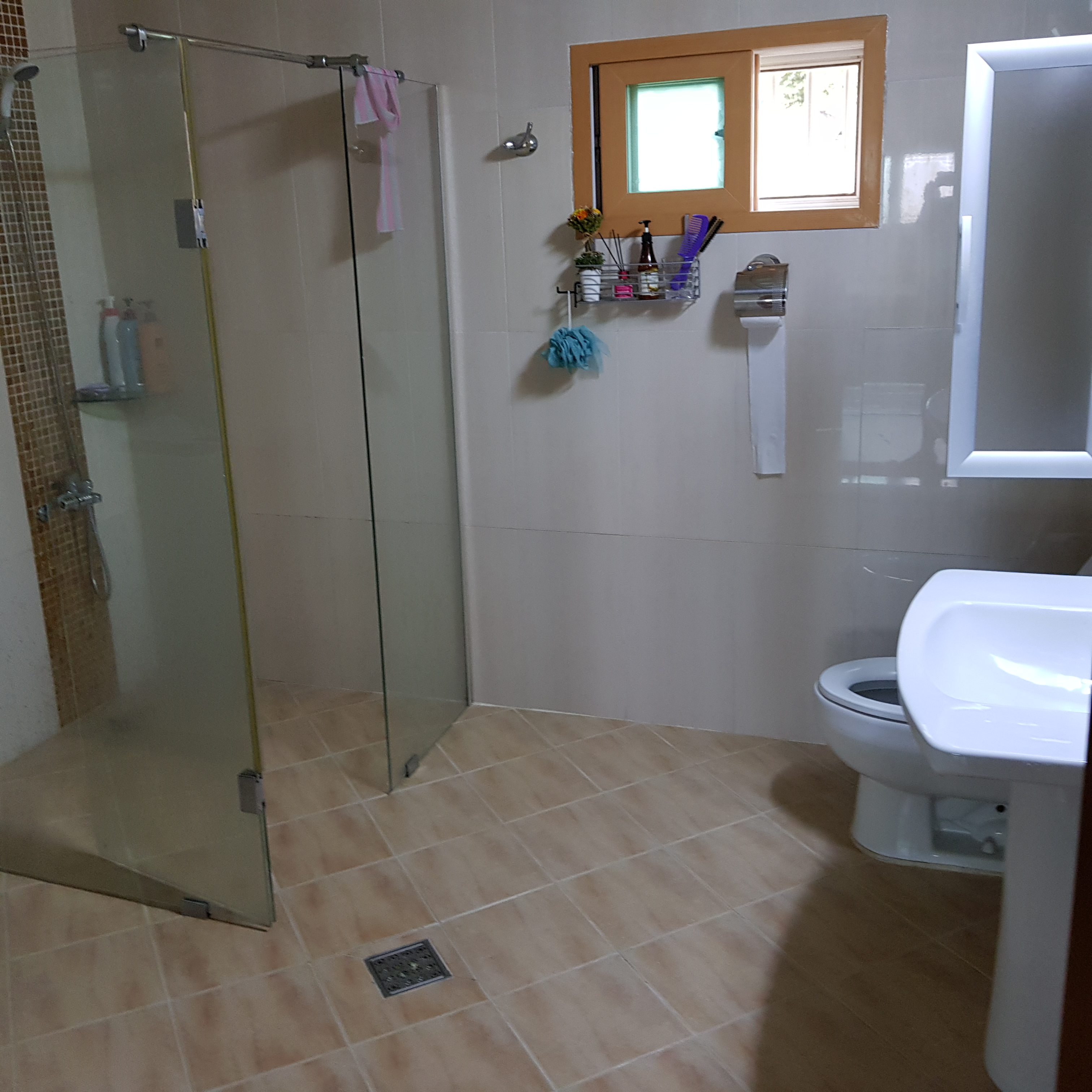 1층 큰방에는 화장실이 있다. 화장실이 아주 넓다. 거실에 있는 화장실보다 크고 쾌적하다.