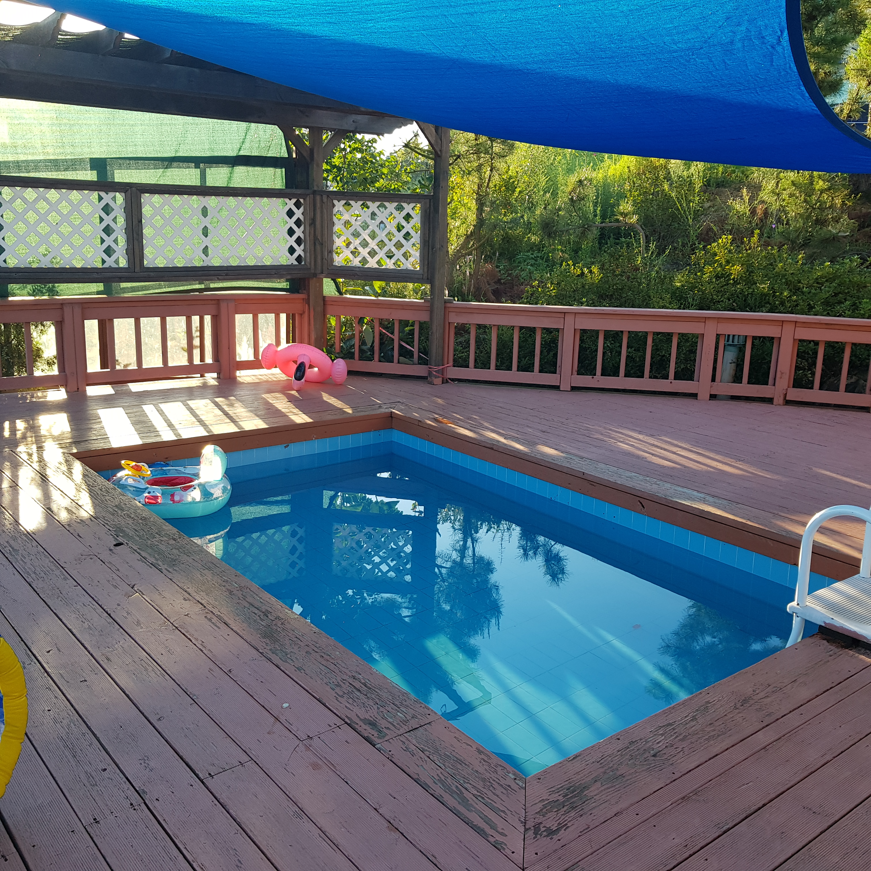 수영장에 천막도 있어서 뜨거운 햇빛을 피해 놀 수 있다. 하지만 날이 추워서 수영장에서 많이 놀지 못해서 아쉬웠다. 수영장 물은 하루 전날 받아 주신다. 하지만 더위가 한풀 꺾여서 그런지 수영장 물이 너무 차가웠다.